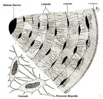 • Kanalikuli, Saluran yang menghubungkan Osteosit, berfungsi menyalurkan makanan dan mengeluarkan zat sisa